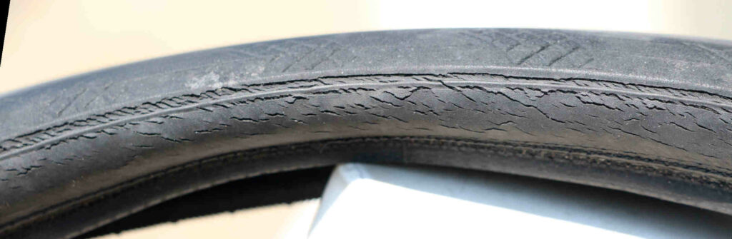 - Mon pneu avant en est à 2 mois, et je vois déjà des craquelures (bien plus visibles pneu dégonflé). Pourtant mon vélo a toujours été stocké en intérieur à des températures modérées.