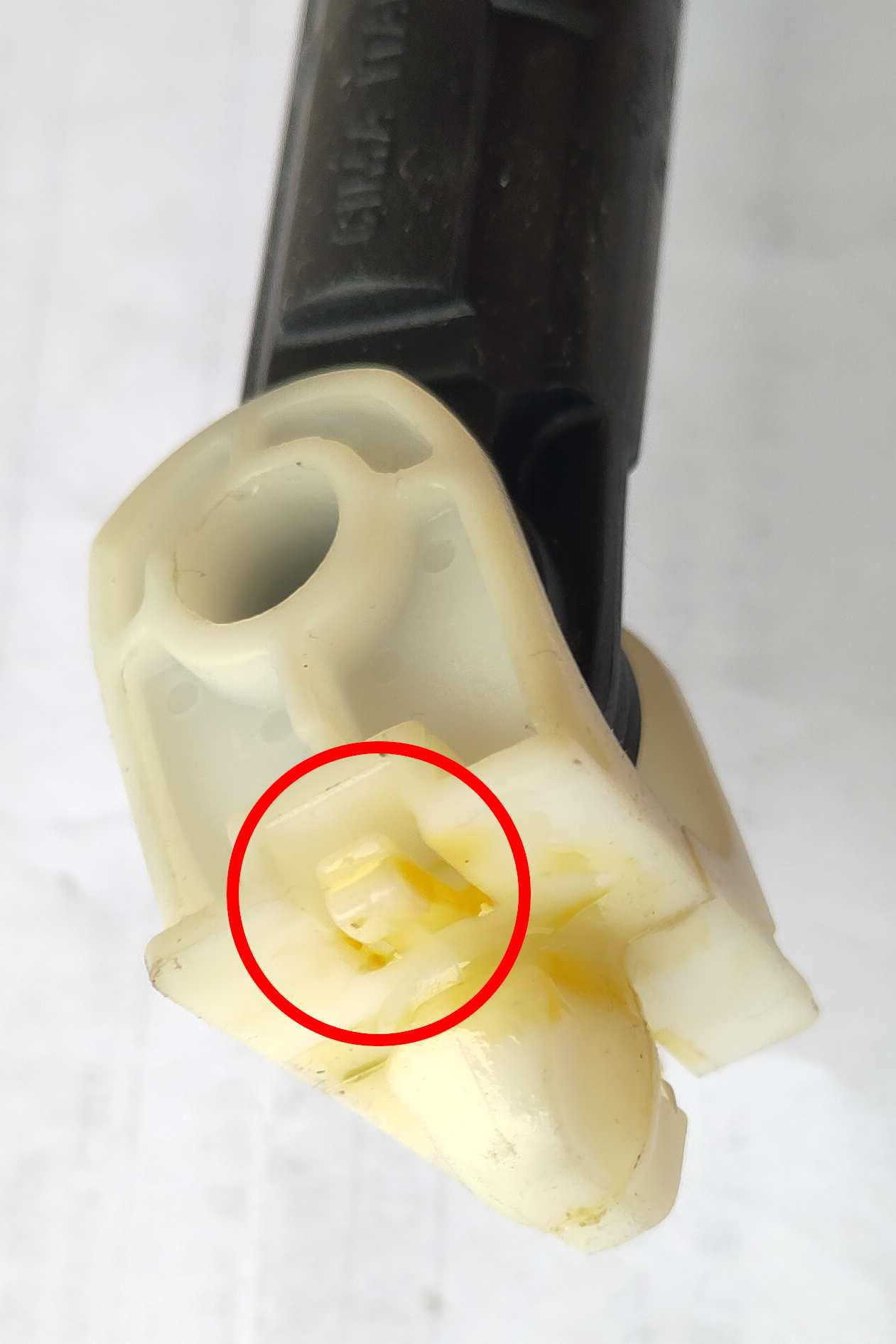 - Ensuite il n’y a plus qu’à faire toutes les étapes à l’envers (enficher le nouvel amortisseur et le tourner de 90°, etc…).
