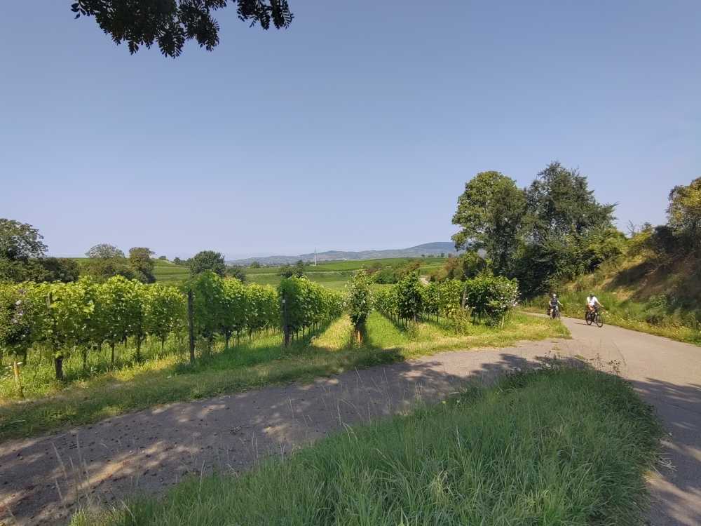 Un itinéraire tranquille, à peine vallonné. Le franchissement du Rhin se fait à Breisach am Rhein. La difficulté est presque de choisir son itinéraire: quand on regarde la carte sur OpenStreetMap, que de choix d’itinéraires cyclables! J’ai fait de la plaine et un peu de colline parmi les vignes.